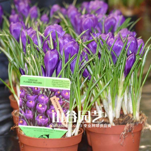 品种描述:番红花“花唱片”,紫色,25cm,自然条件下早春开花。