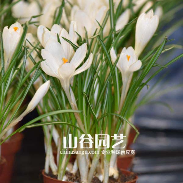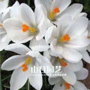 品种描述:番红花“简妮”,白色,橙色花粉,25cm,自然条件下早春开花。